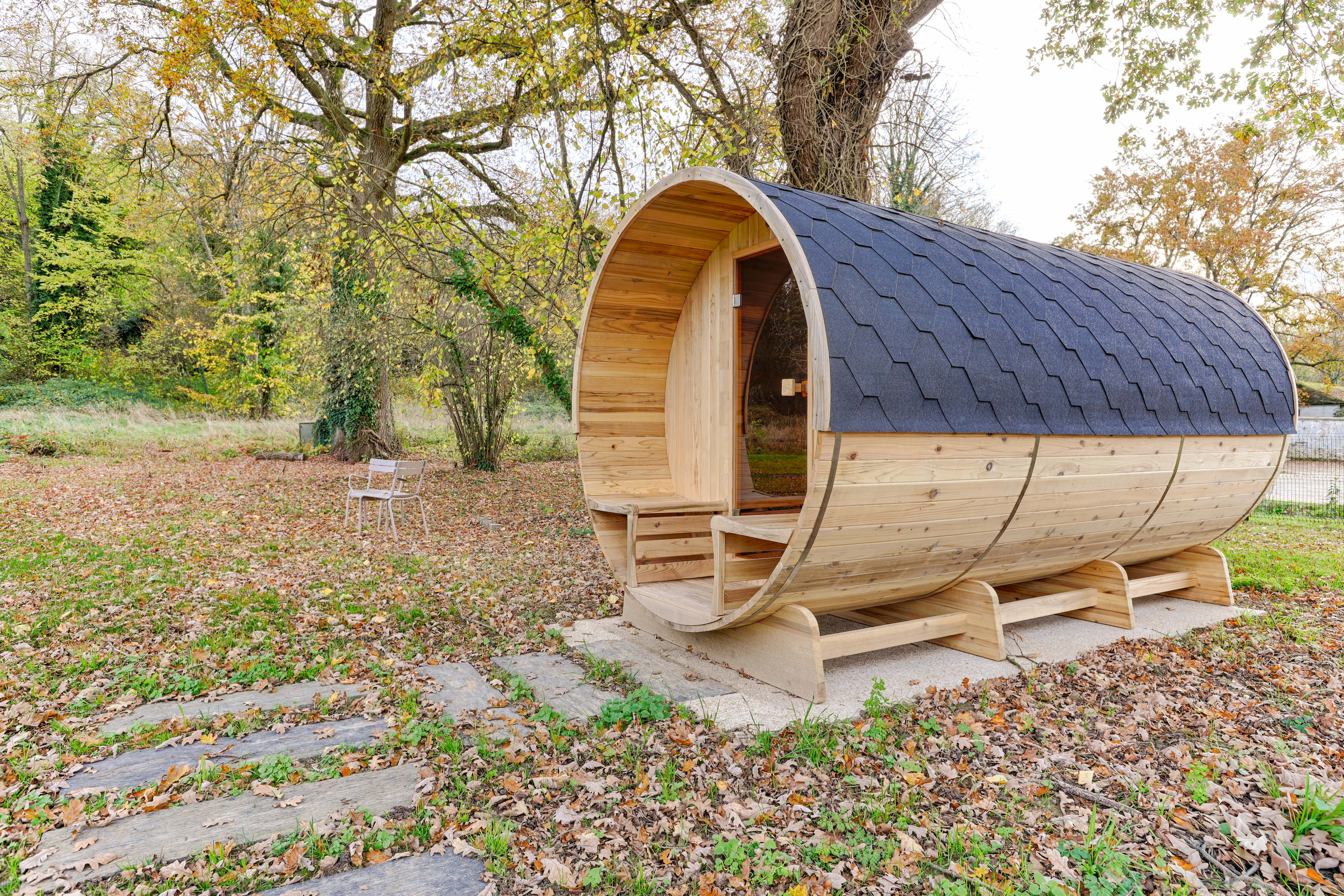 Un sauna extérieur en bois
